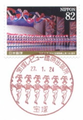 2015年1月24日、「宝塚レビュー臨時出張所」の小型印を押印しました。なお押印は郵便局窓口ではなく、ゆうゆう窓口です。 ・件名:宝塚レビュー臨時出張所 ・使用局:宝塚郵便局(たからづか)【風景印使用局】※ゆうゆう窓口 ・住所:〒665-8799兵庫県宝塚市小…