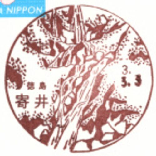 令和3年(2021年)3月3日印の寄井郵便局風景印を郵頼にて入手しました。 ◆寄井郵便局(よりい) ※変形印・住所:〒771-3311徳島県名西郡神山町神領北218-4・図案説明:雨乞いの滝(高根山中腹)※外周:外周の円の一部(渓流部分)が切れている・使用開始日:1991年(…